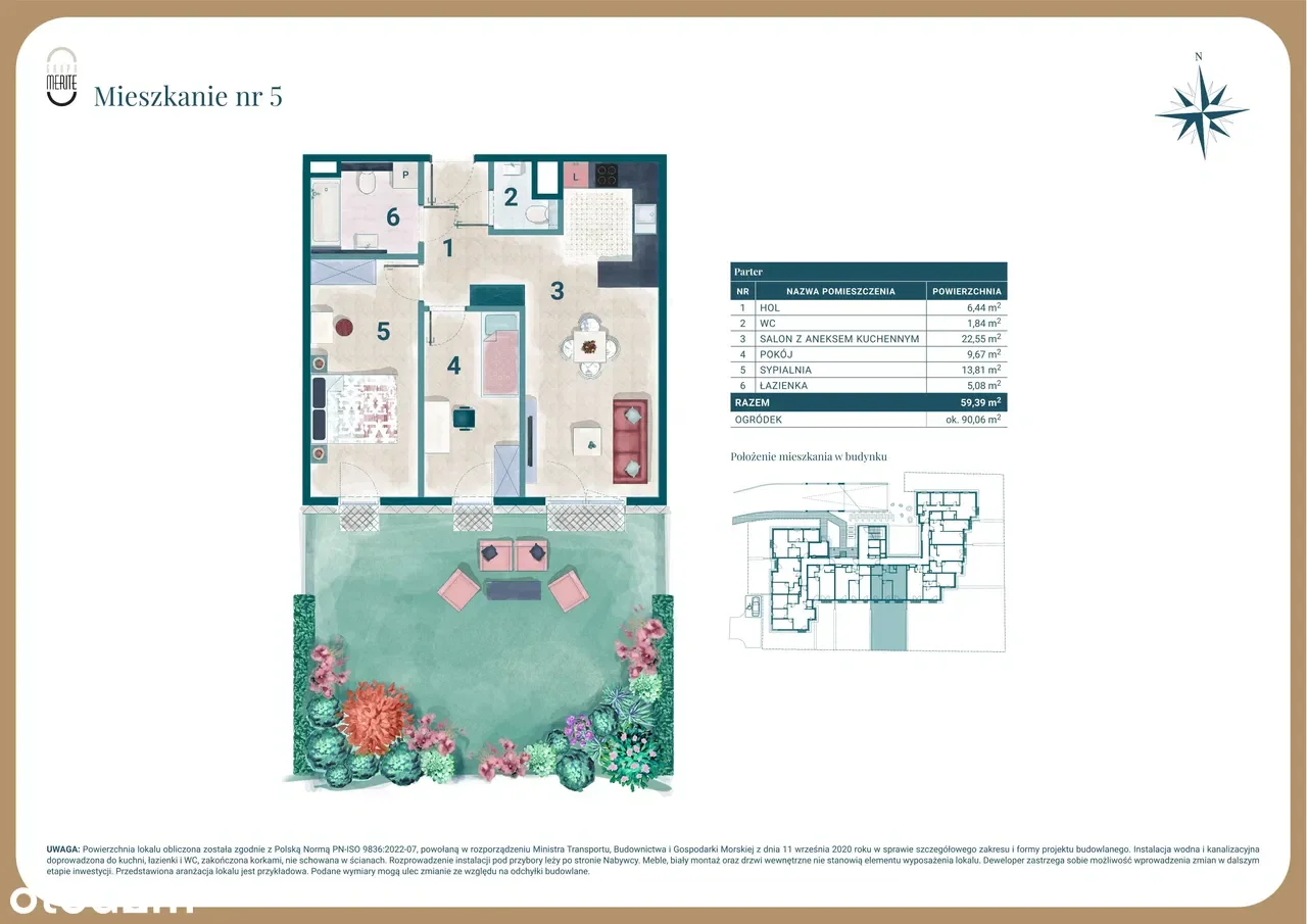 Мерите Серена — это четырехэтажное комфортабельное здание с 49 квартирами и подземным многофункциональным гаражом, включающим парковочные места и кладовые. Коммуникации реализованы через стеклянную лестницу, коридоры и два лифта. Все квартиры на первом этаже имеют сады, а квартиры на верхних этажах — балконы до нескольких метров. В комплексе использованы экологичные решения, такие как зеленые крыши, дождевые сады, фотогальванические панели, зарядные станции для электромобилей и улучшенные теплоизоляционные параметры. Более 50% территории занимает зеленая зона.